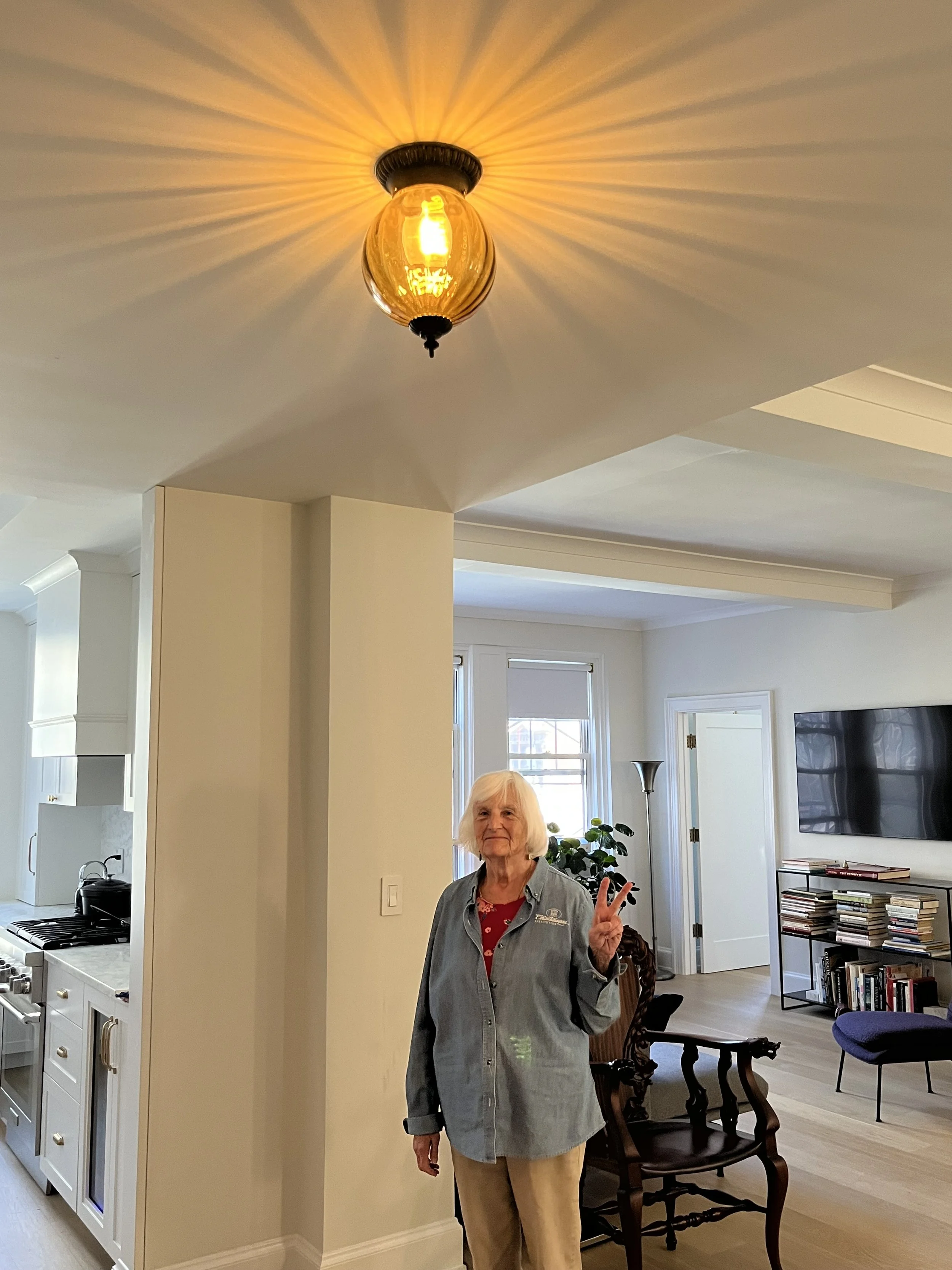 Here she is, not too long ago, in my window seat and under the lantern from the house I grew up in, now transplanted to our New York City home.